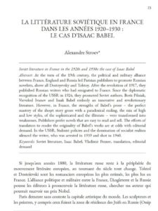 Citation Recommendation: Stroev, Alexandre. ‟La literature soviétique en France dans les années 1920-1930 : le cas d’Isaac Babel”. Synthesis, 4 / 2025: 23-44.
