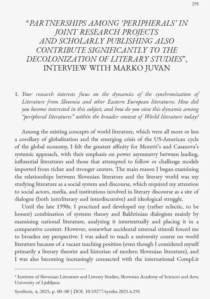 Citation Recommendation: The Editorial Team, Juvan, Marko. “Partnerships among ‘peripherals’ in joint research projects and scholarly publishing also contribute significantly to the decolonization of literary studies”. Synthesis, 4 / 2025: 291-295.